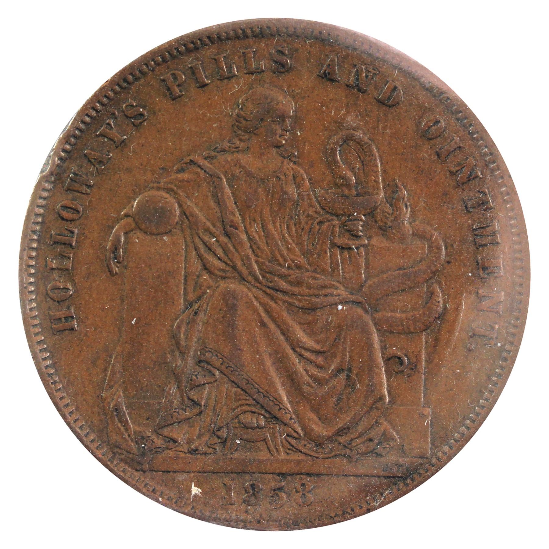 Australia 1858 Penny featuring Professor Holloway, Reverse: Holloways Pills and Ointment. CCCS Certified MS-60 (Tn278.1)