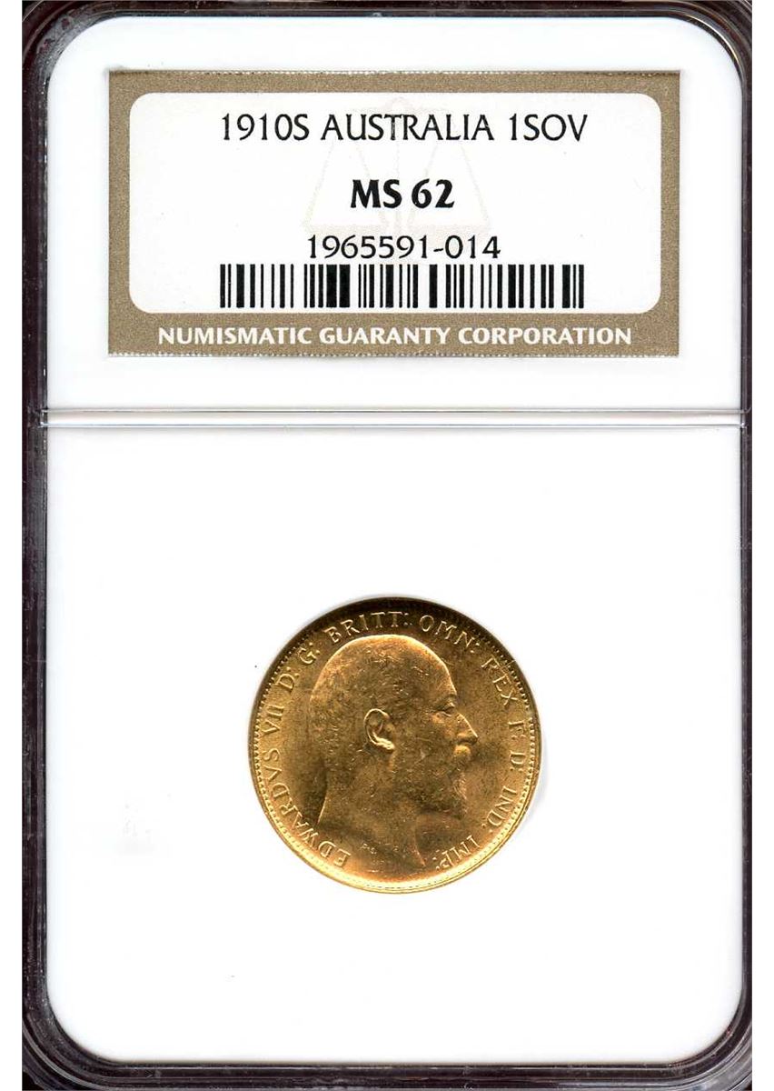 Australia 1910 S, Gold Sovereign, Edward VII, Great luster! Flashy with no problems, KM 15, NGC certified MS-62