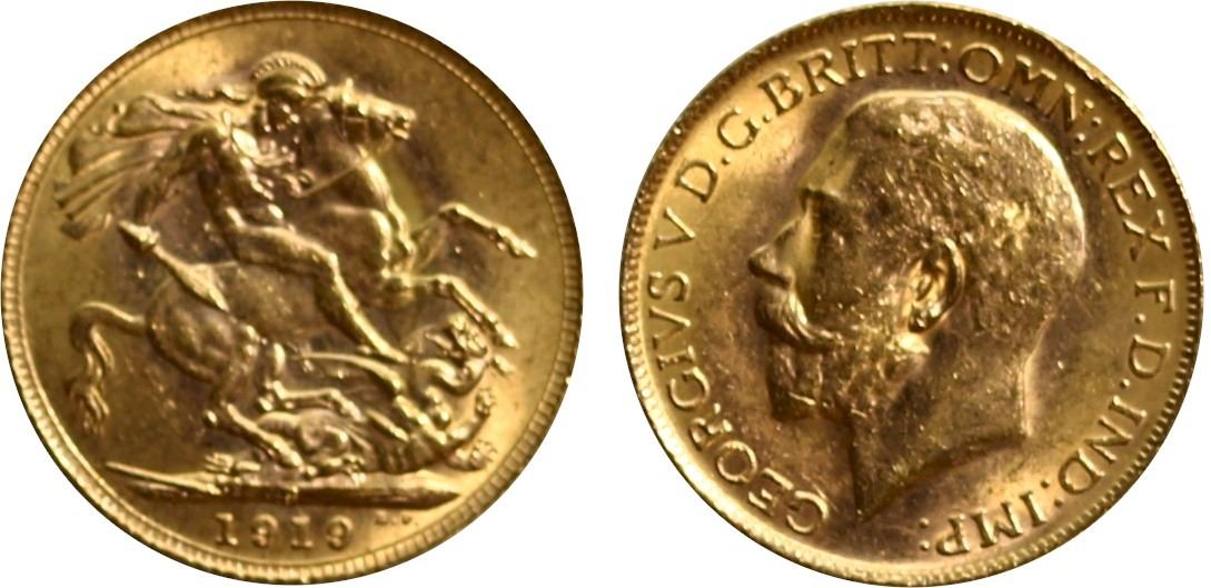 Australia; 1919-P Gold Sovereign Uncirculated or better. A lustrous issue.