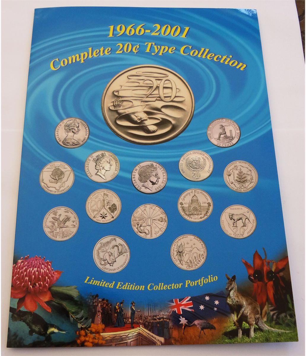 14 Coins in colour folder. Includes scarce 1966 and a full set of 2001 Federation 20 Cents UNC