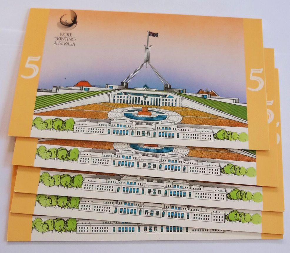 Contains $5 paper and $5 polymer with overprint 7 July 1992 UNC