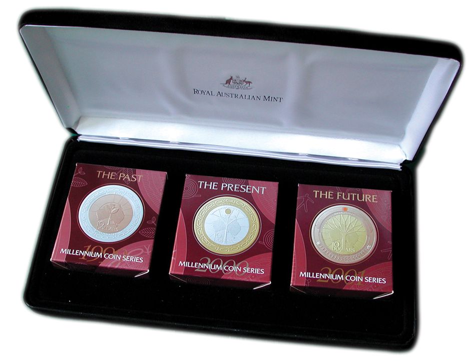 Australia 1999-2001 Past, Present and Future 10 Dollars 3-Coin Cased Set