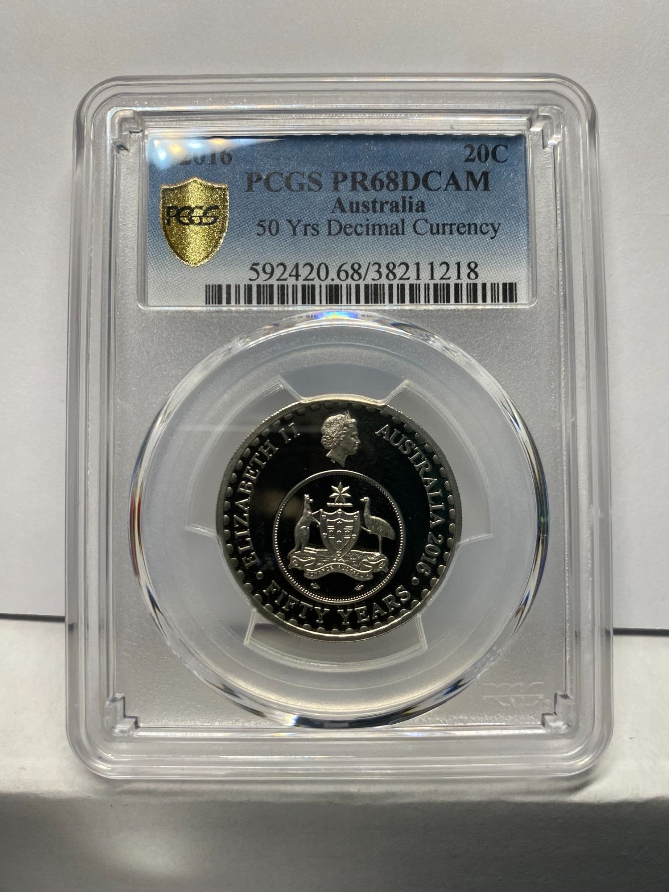 澳洲,兩毫精鑄硬幣, 2016PCGS PR68DCAM, Australia, 20 cents proof coin, 2016, 50th Anniversary of Decimal Currency, PCGS PR68DCAM