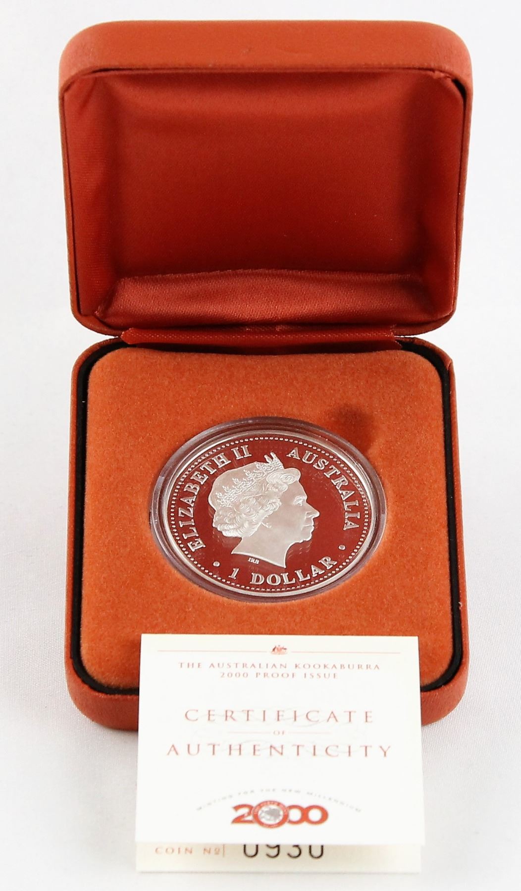 Australia 2000 1 oz Proof Silver Kookaburra with Original Box and COA. Beautiful example of this collector 1 Dollar silver round!