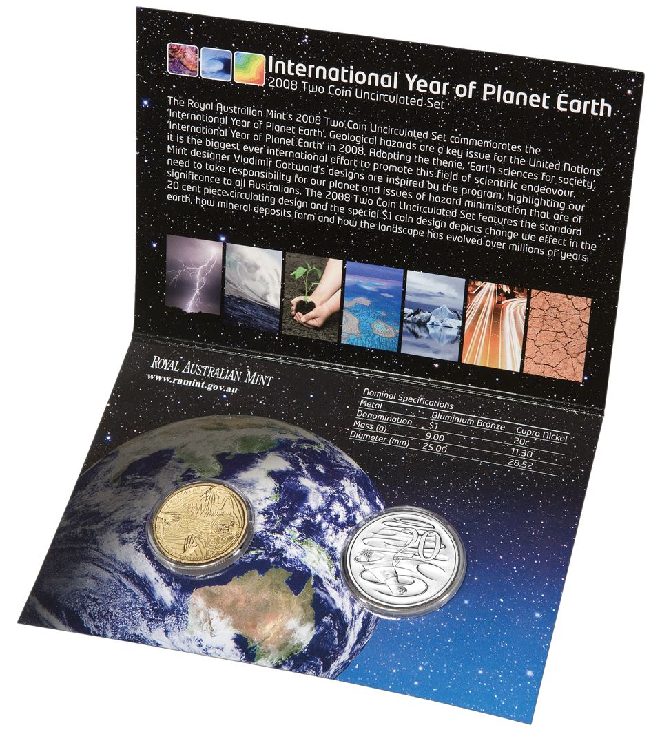Contains Year of Planet Earth commemorative $1 and a regular 20 Cents. In colour Pack of issue UNC