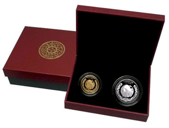 One Ounce .999 fine Silver Proof and 1/10 Ounce .9999 fine Gold Proof. In plush case with certificate of authenticity