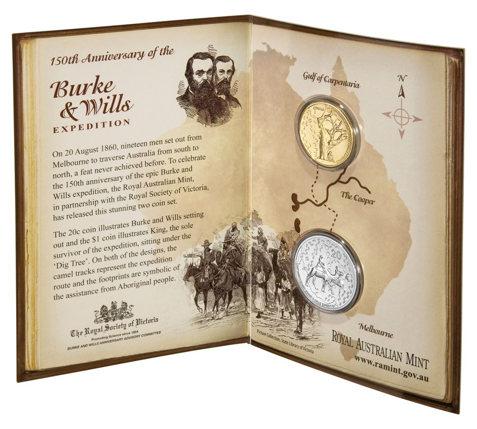 Contains Burke and Wills commemorative 20 Cents and $1. In colour Pack of issue UNC