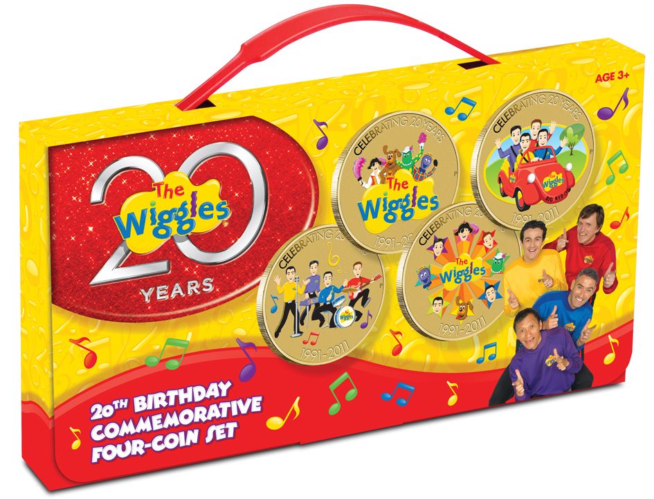 Aluminium Bronze Set of 4 Coloured Dollars in individual guitar-shaped holders and in a "Suitcase" box.