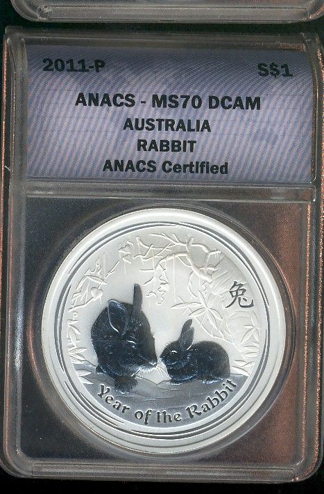 Australia 2011-P 1 dollar, Rabbit ANACS MS-70 DCAM, 1 oz of .999 Silver Gem Coin.