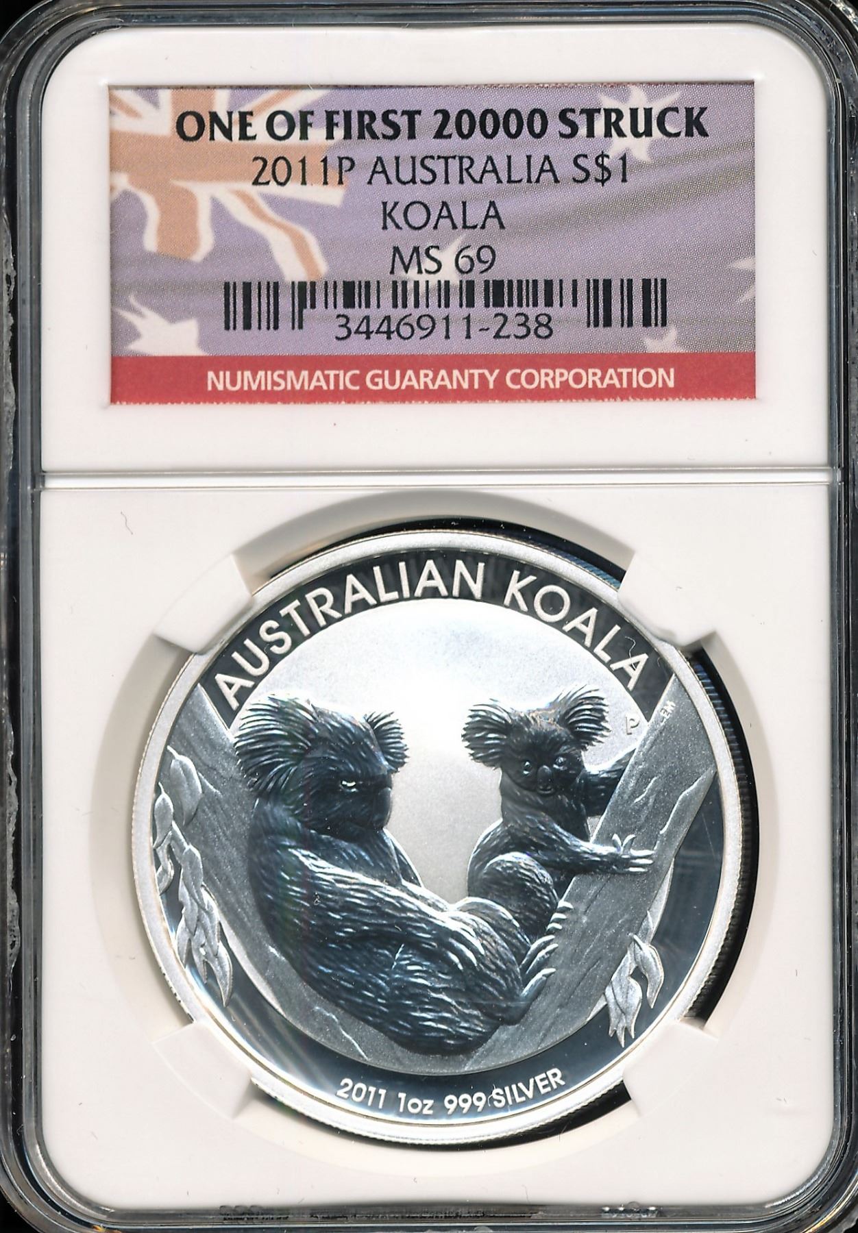 Australia 2011-P Koala Silver Dollar NGC MS69 One Of First 20,000