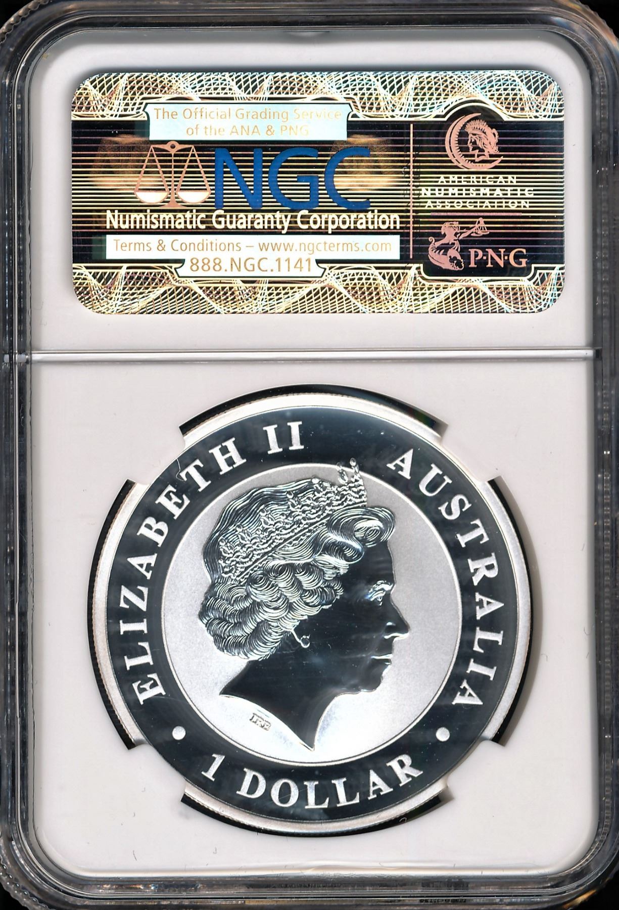 Encapsulated in a plastic grading holder from NGC.