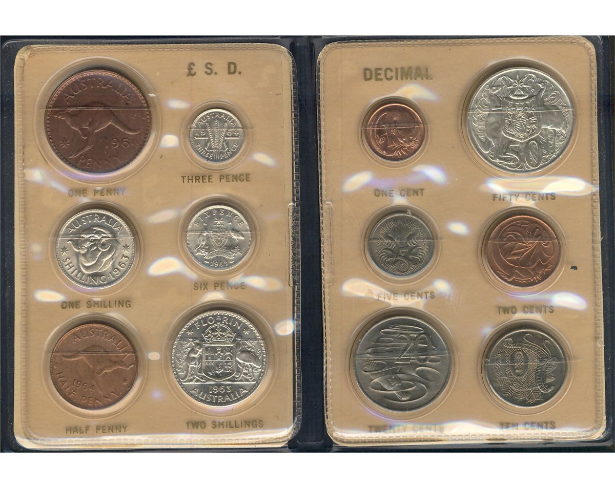 Australia Changeover Souvenir set 14th February, 1966 that include the 6 new coins issue as the new currency and the 6 coins of mix years prior to 1966 from the Pound sterling system.