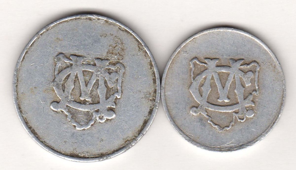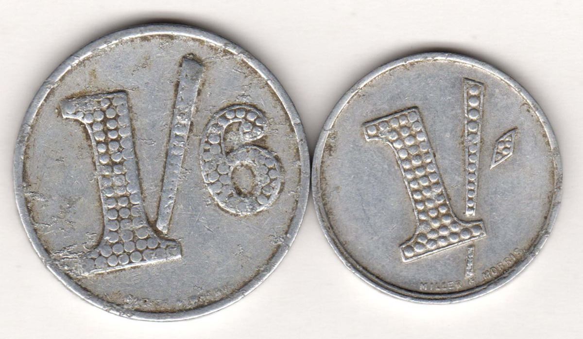 Masonic Club Tasmania, aluminium Shilling, One Shilling and Sixpence, almost very fine. (2)