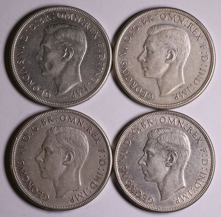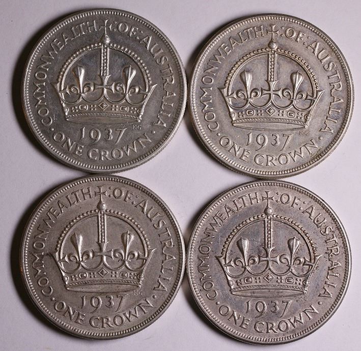 Crown, 1937, most with light toning, graded as very fine - almost extremely fine, a better than average lot, one with nice eye appeal (4 coins)