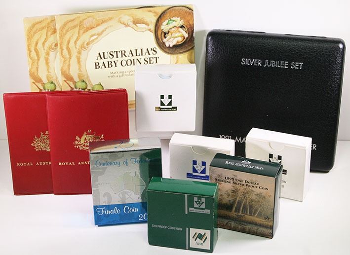Uncirculated Coin Sets, 1971, 1979; Proof One Dollar, 1984; Proof Silver Ten Dollars, 1986, 1987, 1988; Uncirculated Baby Coin Sets (2), 1995; Silver Proof One Dollar, Waltzing Matilda, 1995, Masterpieces in Silver, 1991; Silver Proof Five Dollars, Centenary of Federation Finale Coin, 2001