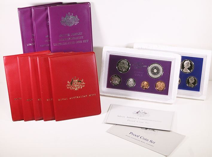 Uncirculated Coin Sets, Silver Jubilee, 1977 (3)(some copper coins toned), 1978 (5); Proof Sets, Silver Jubilee, 1977, 1978