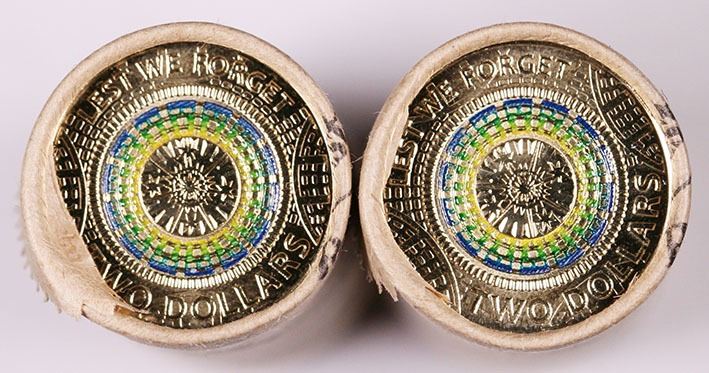 Australia, Decimal Mint Rolls, Two Dollars, 2017 Lest We Forget, Royal Australian Mint rolls (2)