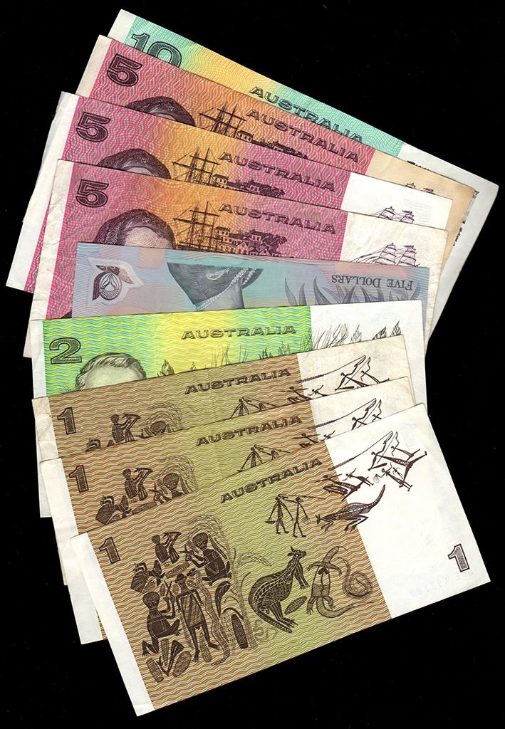 One dollar (R.78) (3); Two dollars (R.89); Five dollar, (R.206a, 209a, 213, 314a); Ten dollars (R.313b), fine to good very fine, ideal starter lot. (9)