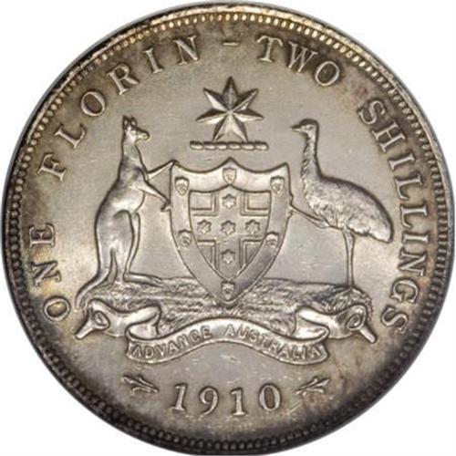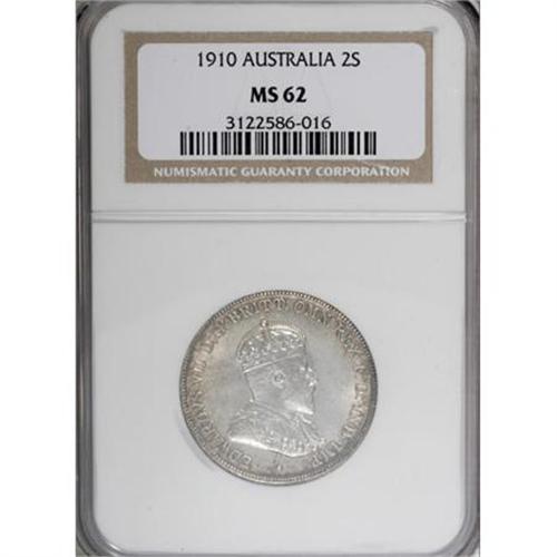 <B>Edward VII Florin 1910,</B></I> KM21, MS62 NGC. Lustrous and well struck with light peripheral toning and minor abrasions.<BR><BR><b>Shipping:</b> Coins & Currency (<a target="_blank" href="http://www.heritageauctions.com/common/shipping.php">view shipping information</a>)