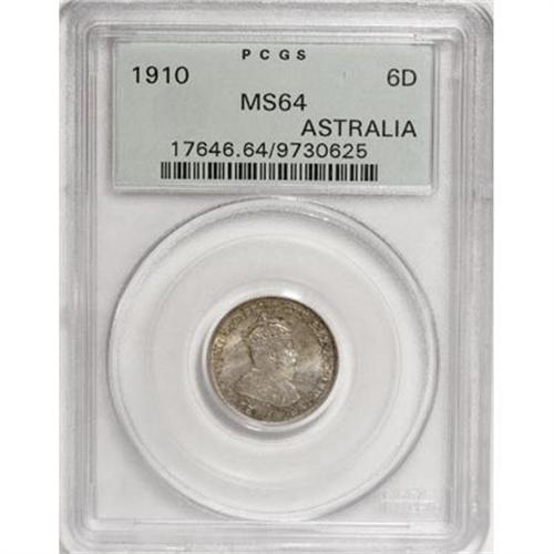 Australia Edward VII Sixpence 1910, KM19, MS64