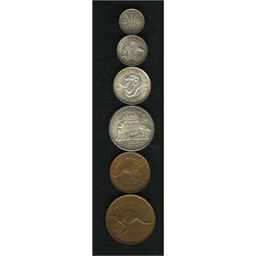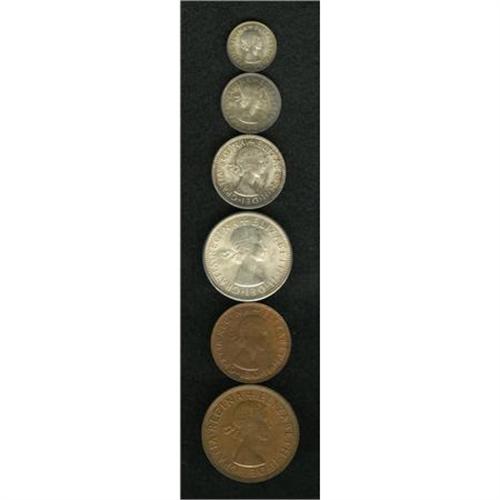 <B>Elizabeth II 1953 Type Set,</B></I> the complete six coin series including the Halfpenny and Penny (Perth), 3 and 6 Pence, Shilling and Florin, all nicely toned UNC. The Sixpence is very scarce in mint state and this is a choice original example. <B>Sold as is, no return lot.</B></I><BR><BR><b>Shipping:</b> Coins & Currency (<a target="_blank" href="http://www.heritageauctions.com/common/shipping.php">view shipping information</a>)