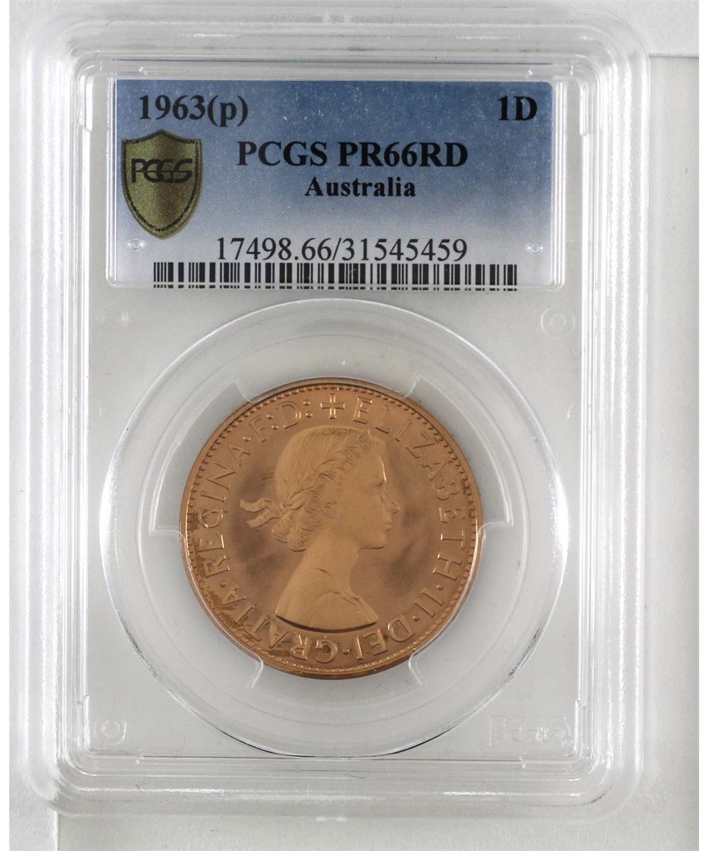 Australia: Elizabeth II Proof Penny 1963-(P) PR66 Red PCGS Certified. Coin has exceptional Soft satin Luster (KM#56)