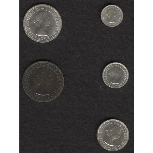 <B>Elizabeth II Proof Set 1958 Melbourne, </B></I>KM-PS20, deeply toned Penny and brilliant silver types.<BR><BR><b>Shipping:</b> Coins & Currency (<a target="_blank" href="http://www.heritageauctions.com/common/shipping.php">view shipping information</a>)
