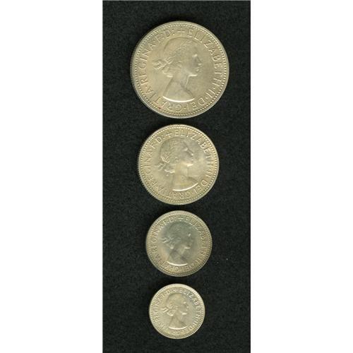 <B>Elizabeth II Proof Set 1960, </B></I>KM-PS22, all four coins are lightly toned.<BR><BR><b>Shipping:</b> Coins & Currency (<a target="_blank" href="http://www.heritageauctions.com/common/shipping.php">view shipping information</a>)