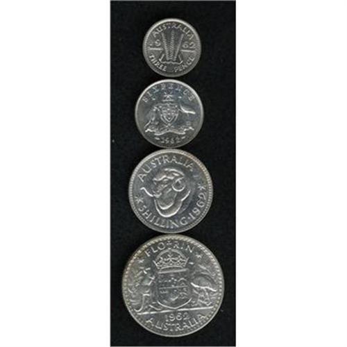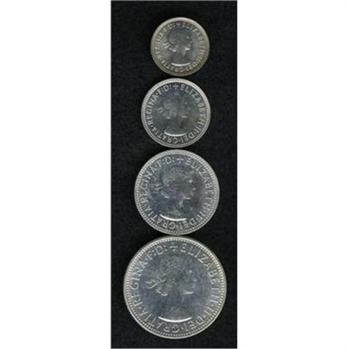 <B>Elizabeth II Proof Set 1962 Melbourne, </B></I>KM-PS26, four coin silver set in the original plastic snap-shut holder -- all are fully brilliant.<BR><BR><b>Shipping:</b> Coins & Currency (<a target="_blank" href="http://www.heritageauctions.com/common/shipping.php">view shipping information</a>)