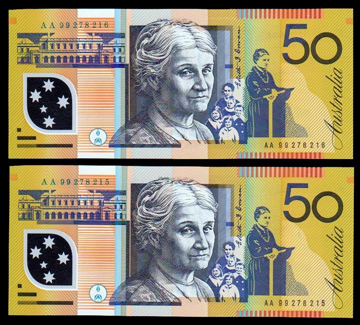 Australia, Fifty Dollars, 1999, MacFarlane/Evans, (R518cF), AA99 278215, First Prefix