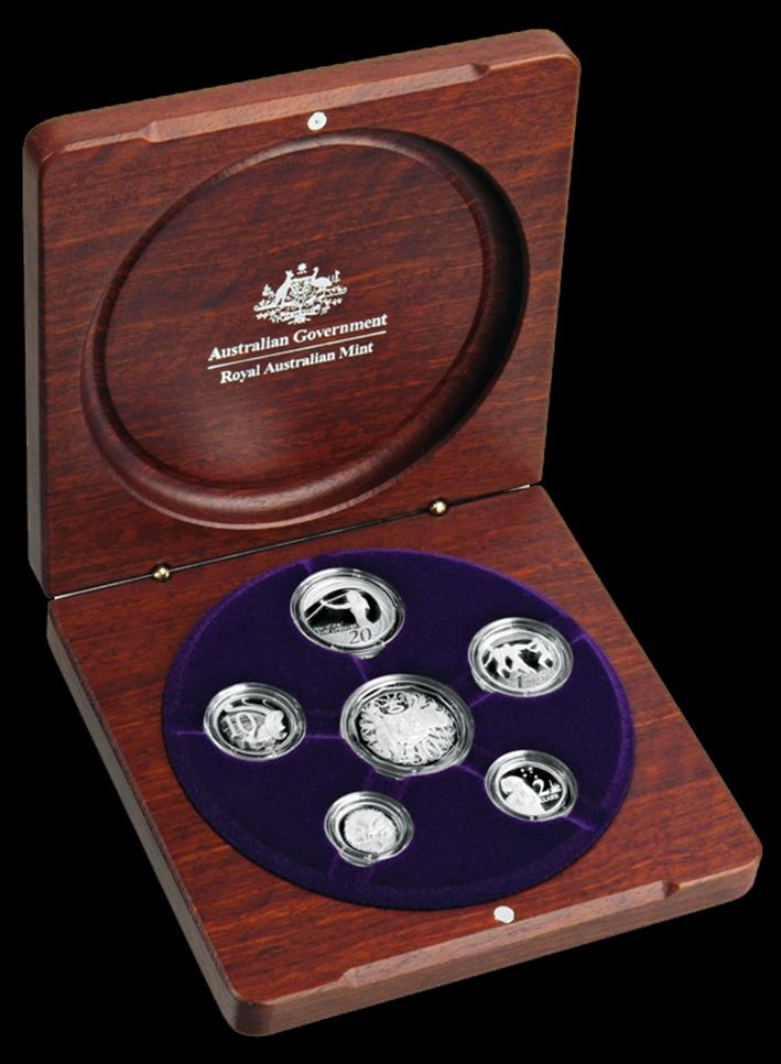 Australia, Five Cents to Two Dollars, Elizabeth II, 2007, Fine Silver Proof Set