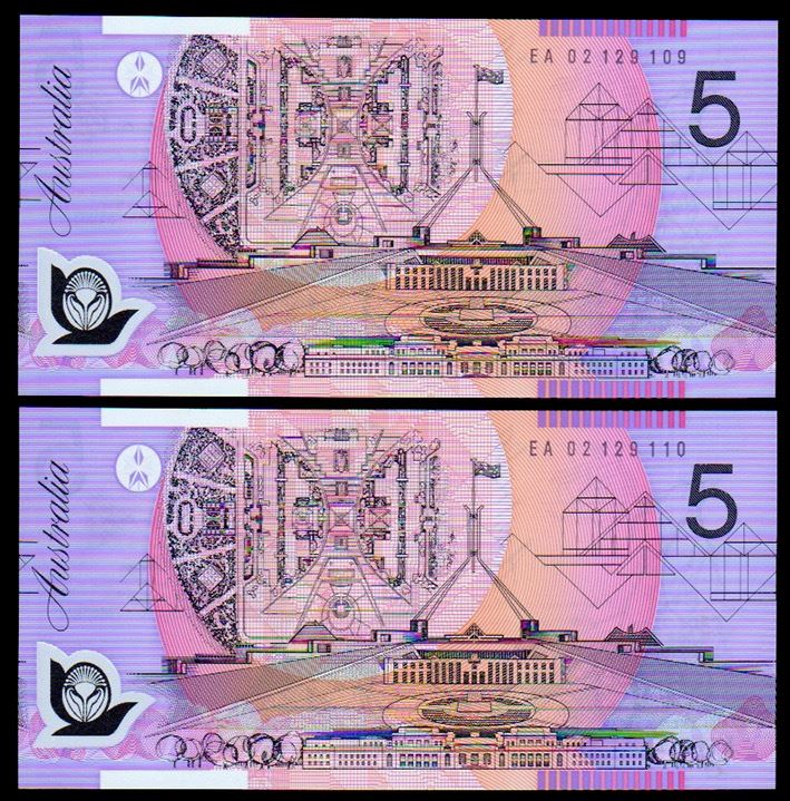 Australia, Five Dollars, 2002, MacFarlane/Henry, (R220aL), EA02 129109-10, Last Prefix