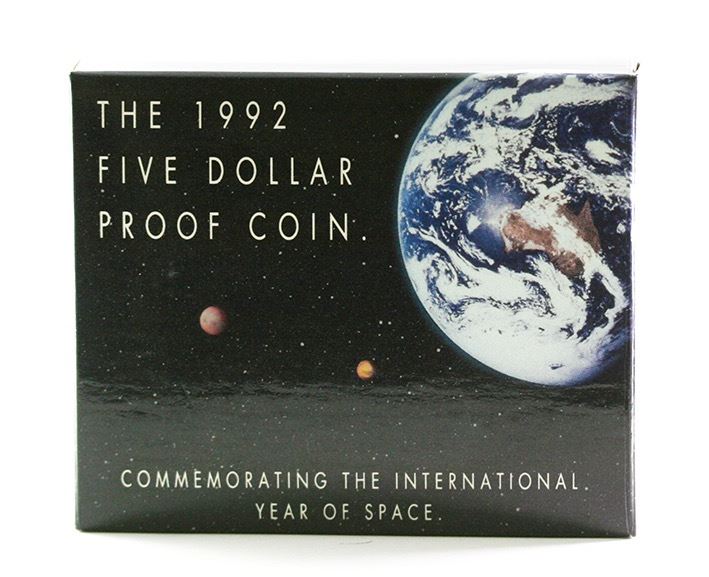 Proof Five Dollars, 1992 Year of Space SILVER proof, issued at Adelaide ANDA coin fair, 2500 minted, very low certificate # 0006