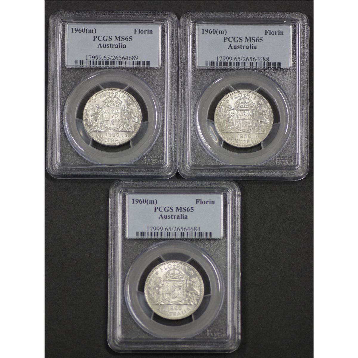 Australia Florin 1960 MS 65 (3) Ex Roll