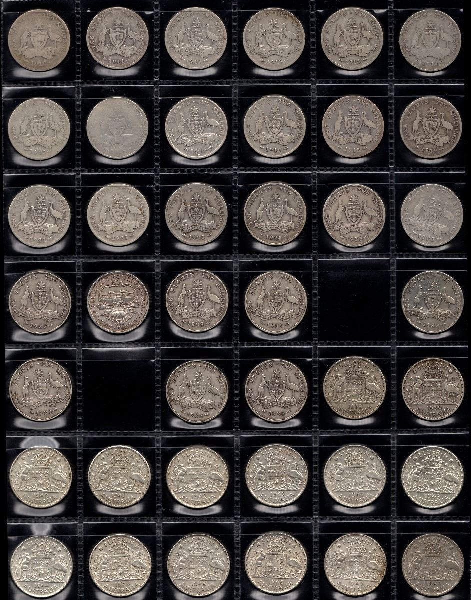 Australia, Florin Set, Edward VII to Elizabeth II, 1910 to 1963