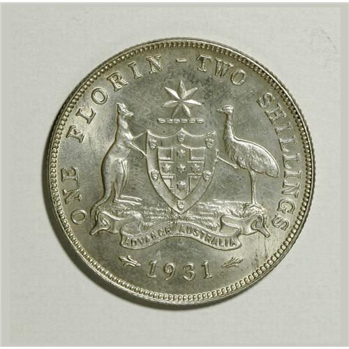 <B>George V Florin 1931, </B></I>KM27, lightly toned AU-UNC, an attractive original coin with full mint luster.<BR><BR><b>Shipping:</b> Coins & Currency (<a target="_blank" href="http://www.heritageauctions.com/common/shipping.php">view shipping information</a>)