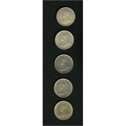 <B>George V Shilling 1935 - Five Examples, </B></I>KM26, XF, XF-AU, AU (2) and UNC with light contact marks. <B>Sold as is, no return lot.</B></I><BR><BR><b>Shipping:</b> Coins & Currency (<a target="_blank" href="http://www.heritageauctions.com/common/shipping.php">view shipping information</a>)