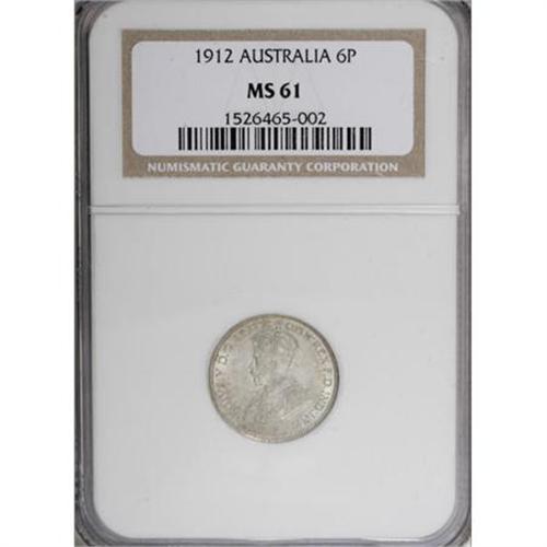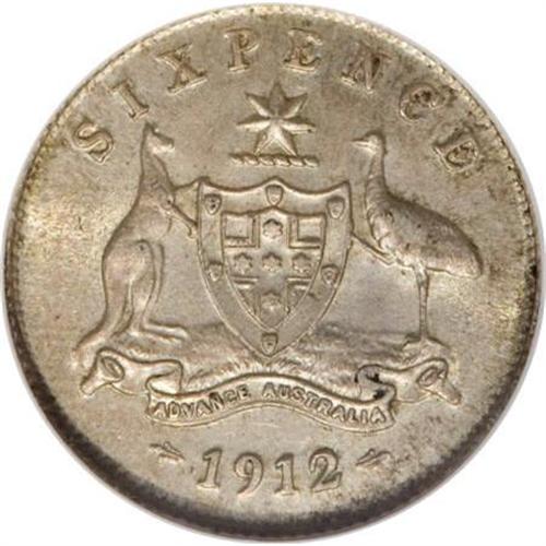 Australia George V Sixpence 1912, KM25, MS61
