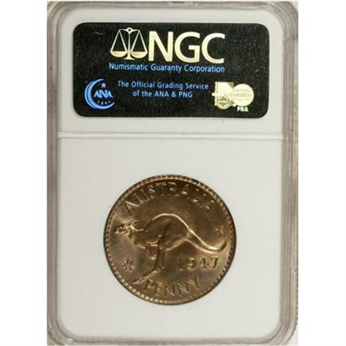Australia: George VI Penny 1947(M), KM36, MS66 R