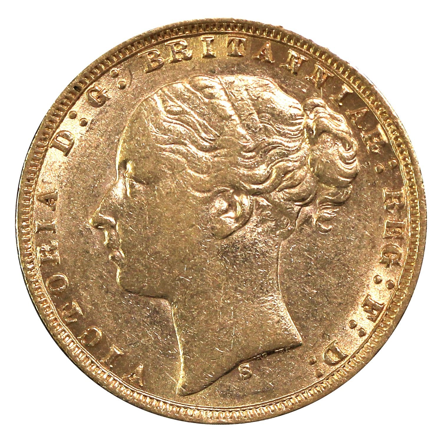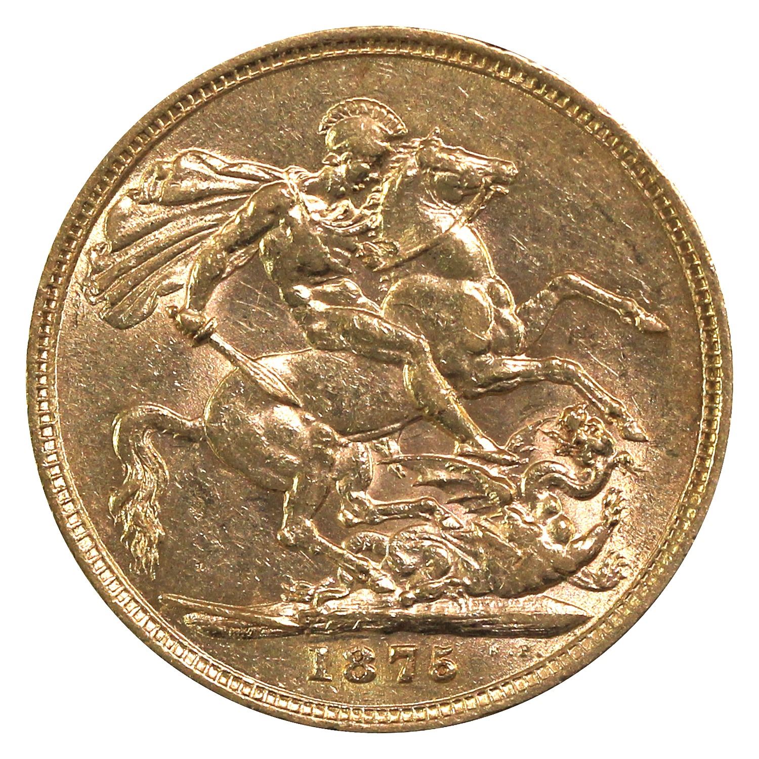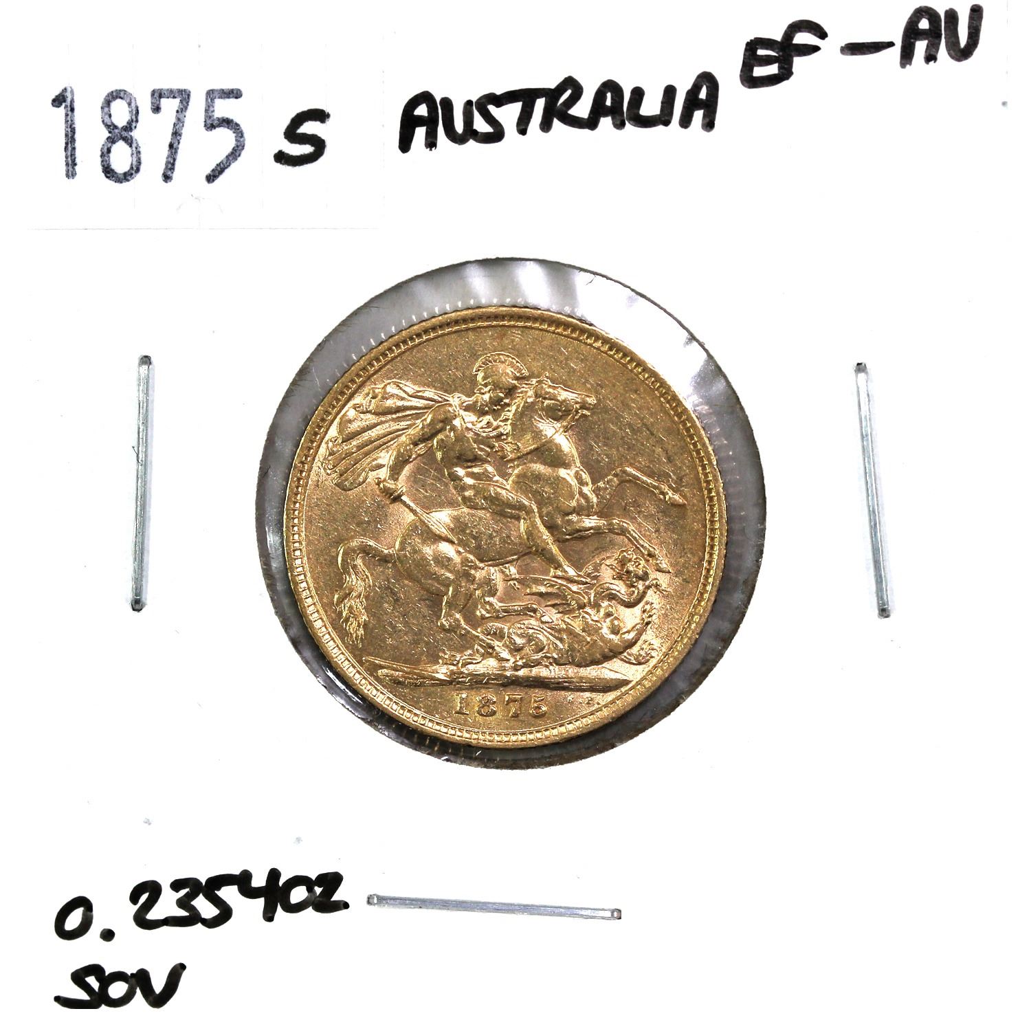 Australia Gold 1875-S Full Sovereign in EF-AU Condition. Coin is 22K and contains 0.2354 ozt