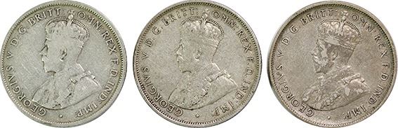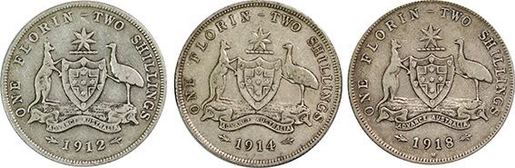 Florins, 1912, 1914, 1918, graded very good, almost fine, fine respectively (3 coins)
