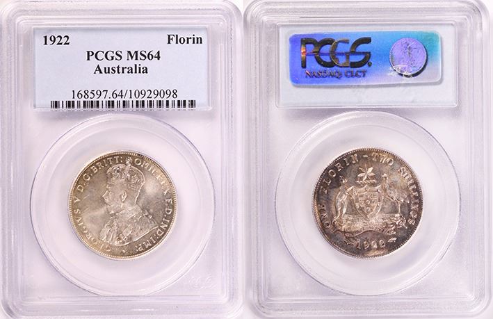Florin, 1922, PCGS MS64, tough date, scarce in high grade