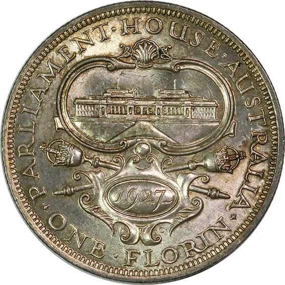 Florin, 1927, Canberra, attractive tone with golden hues, grade as uncirculated