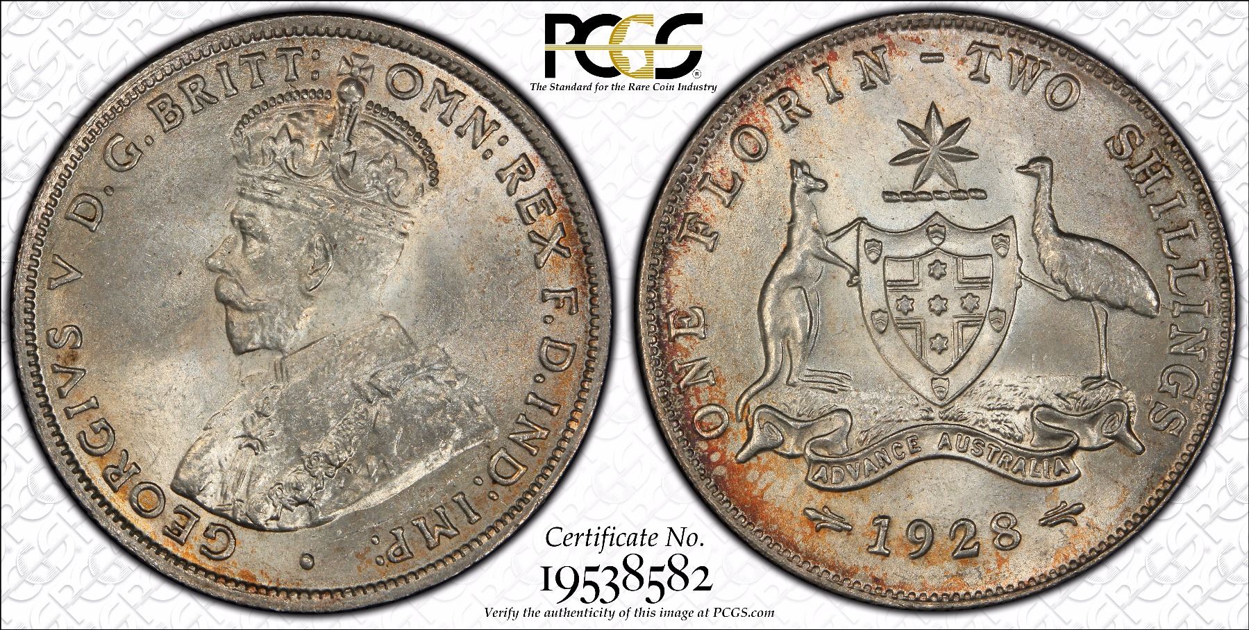 Australia, KGV, Florin, 1928, PCGS MS64