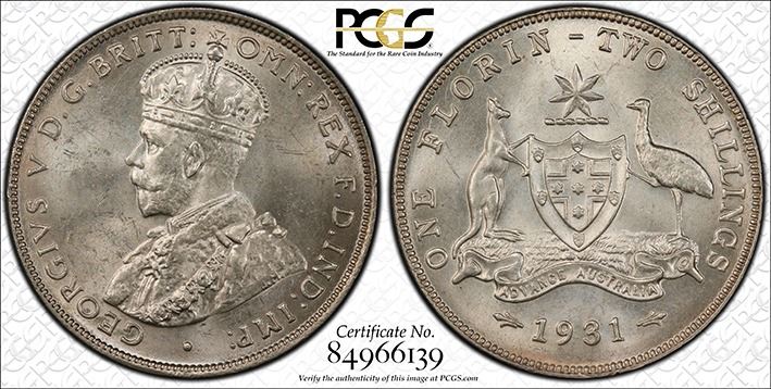 Australian, KGV, Florin, 1931, PCGS MS 64