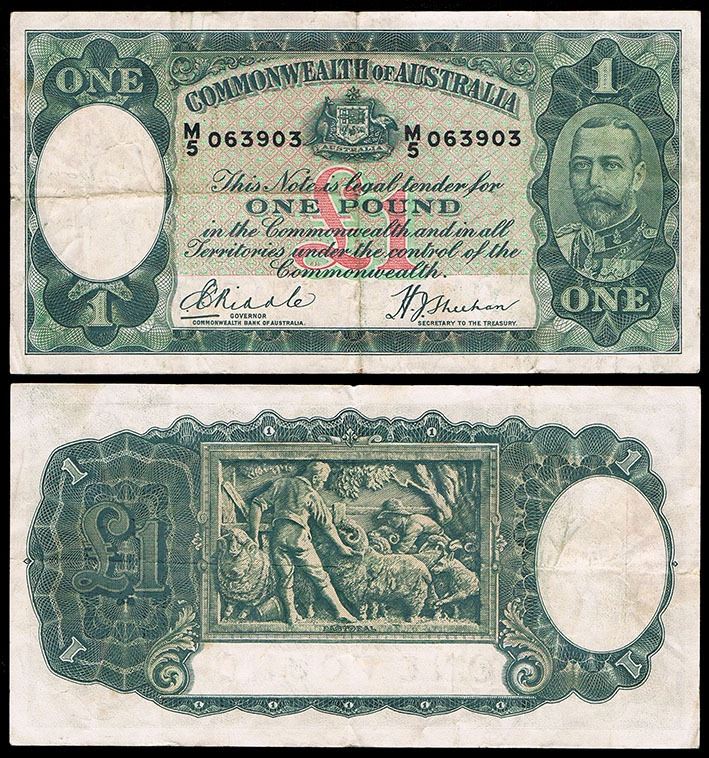 Australia, KGV, One Pound, Riddle/Sheehan, 1933 (R.28)