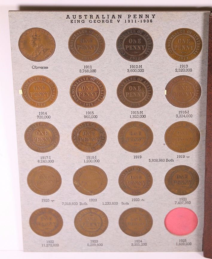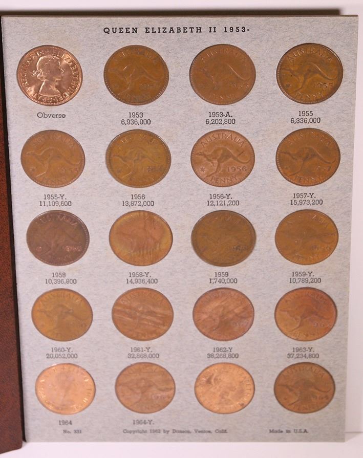Australia, KGV-QEII, Penny Set, 1911-64, VG-B/Unc