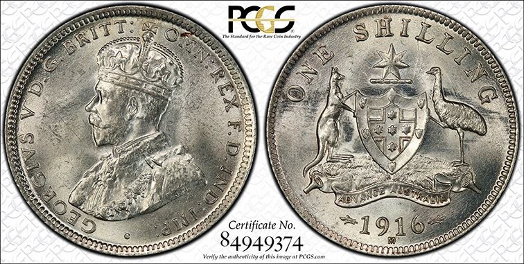 Australia, KGV Shilling, 1916-M, PCGS MS 63