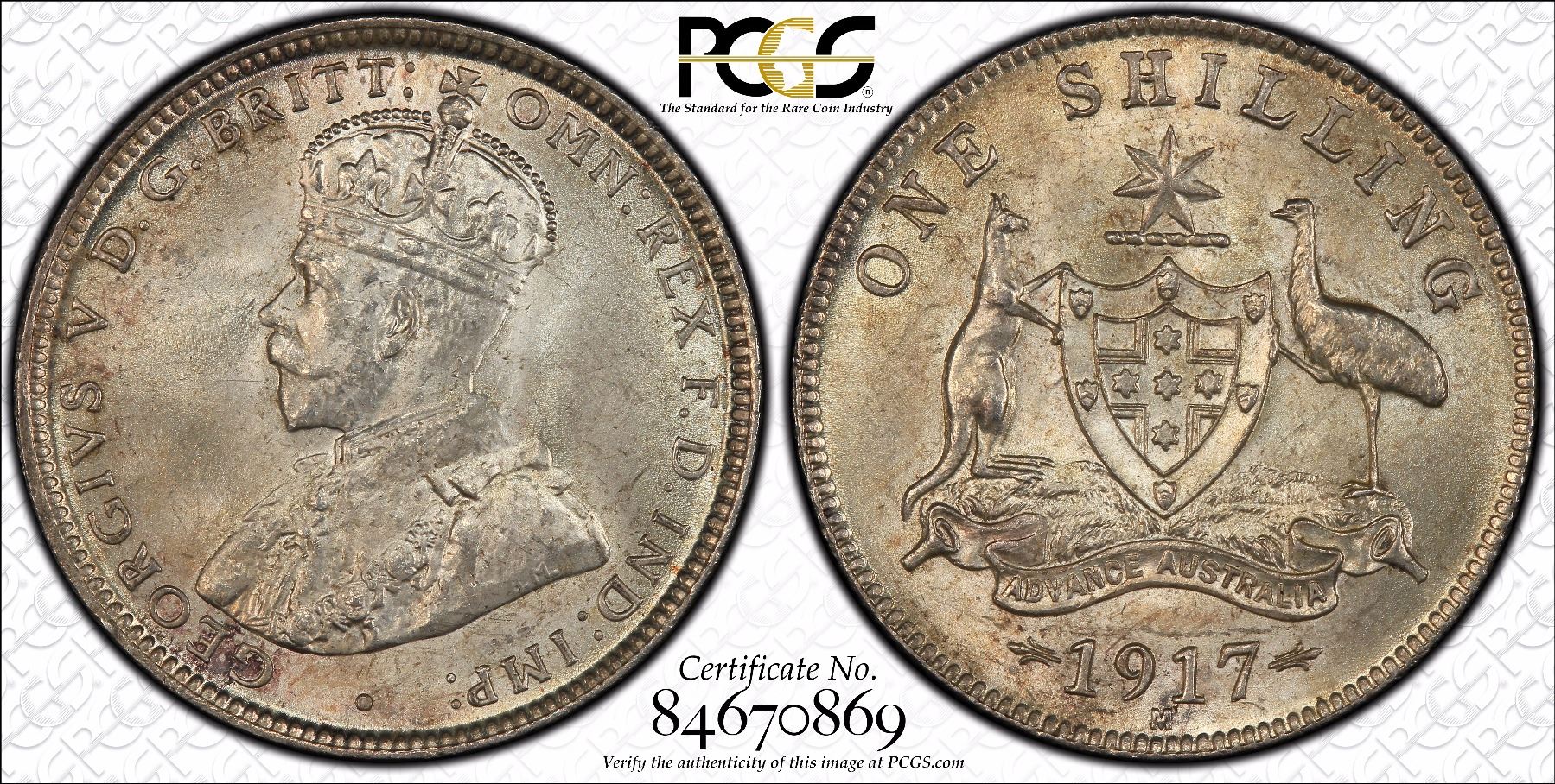 Australia, KGV, Shilling 1917-M, PCGS MS66, Ex. Bench Mark Collection