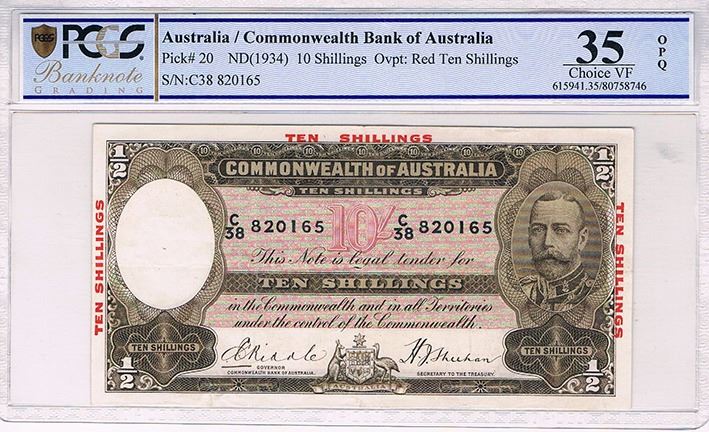 Ten Shillings, Riddle/Sheehan, Overprint (R.10), 1934, PCGS Choice VF OPQ, a scarcer issue